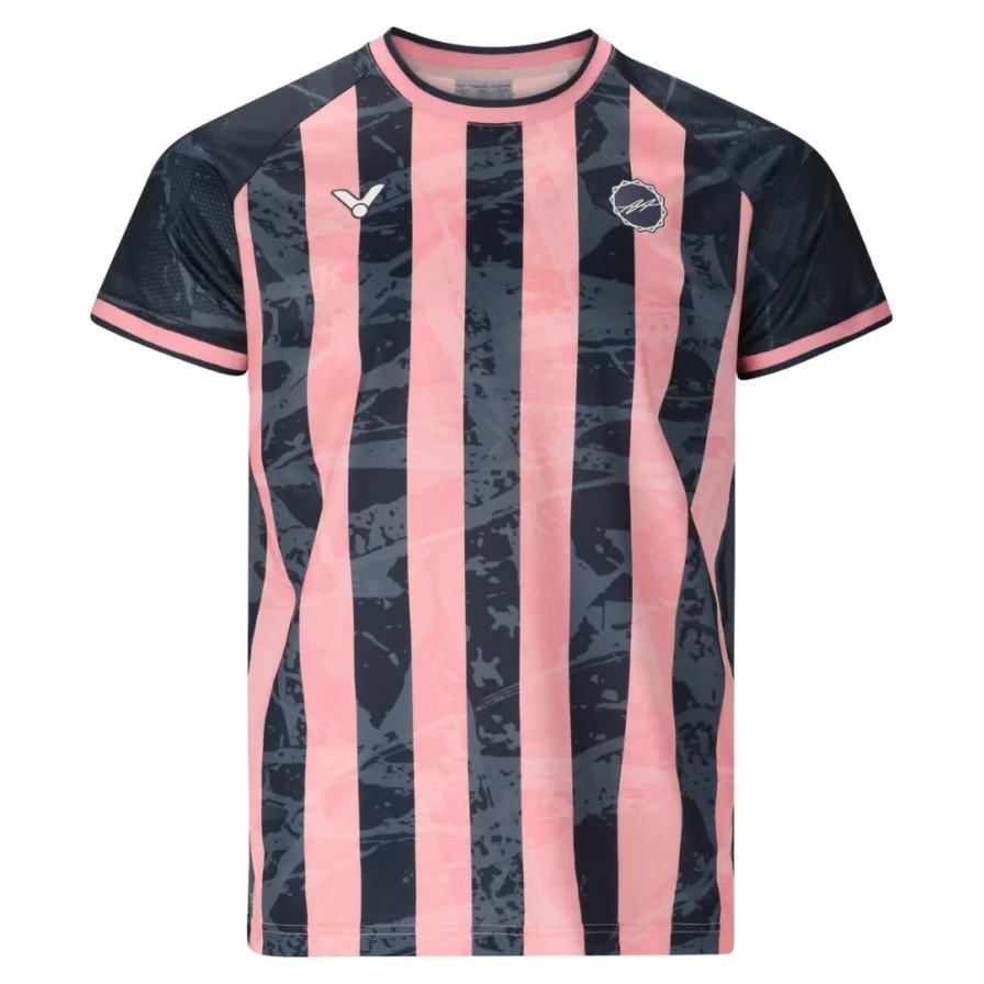 Victor T-55091 AA T-shirt kombinerar komfort, prestanda och modern design. Tillverkad i 100% återvunnen polyester som ger ett lätt och ventilerande material som håller dig torr och bekväm under både träning och match. Designad i samarbete med Anders Antonsen och med en sportig passform med fokus på rörelsefrihet – så att du kan prestera ditt bästa på banan och samtidigt se skarp ut i en stilren marin look.
